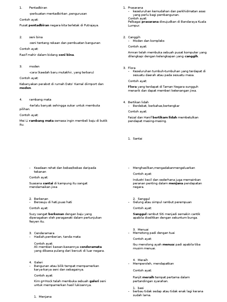 Unit Kokurikulum Contoh Karangan Dan Bina Ayat